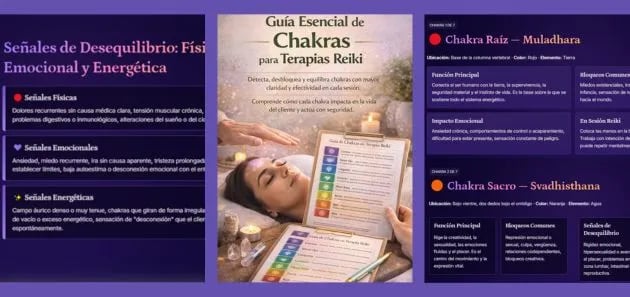 📘 Tarjetas de Respuesta Rápida en Sesión Reiki + Tabla Profesional de Chakras